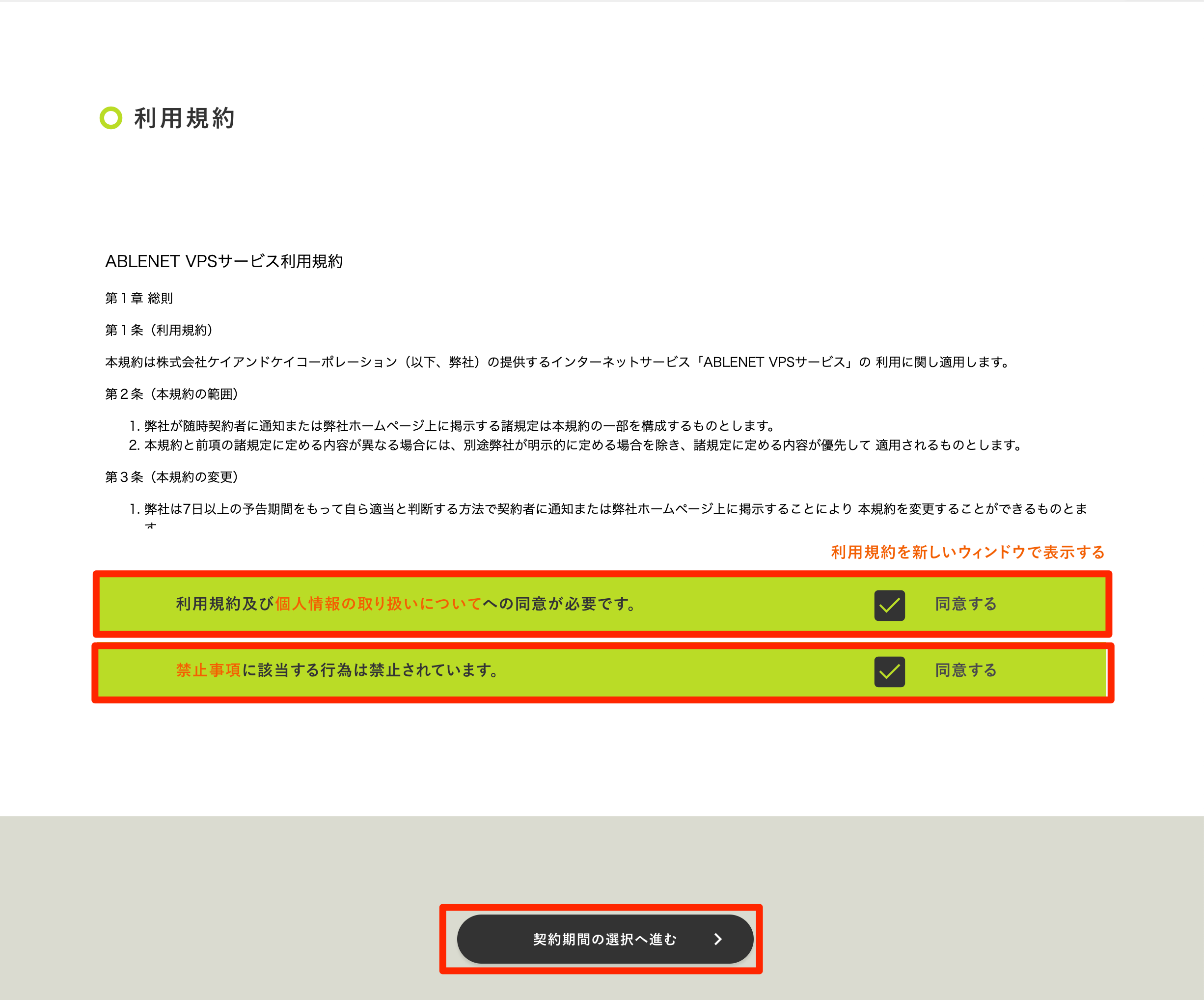 契約期間ページにてサーバーの契約期間を選択します。